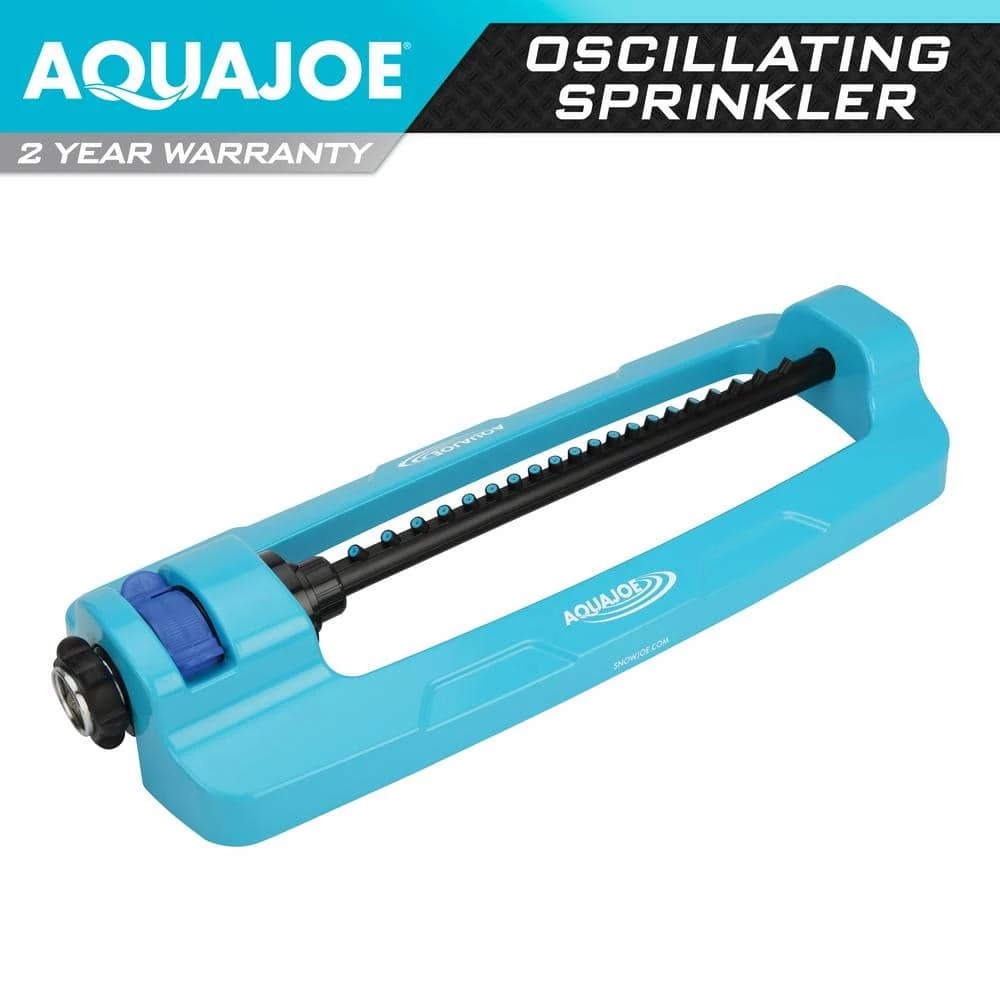 WATER YOUR WAY. Keep your grass green and lawn lush with the SJI-OMS20 Indestructible Metal Base Oscillating Sprinkler from AQUA JOE, by Sun Joe. With AQUA JOEs completely customizable coverage patterns, you’ll have the control you need to make your home the envy of the entire neighborhood. Just slide and select your range settings to reach every corner of your yard from the smallest lot to the largest lawn. The 20 sturdy, plastic nozzles provide even water flow and precise dispersal up to 4,400 sq. ft. while the water-powered turbo drive motor ensures optimal coverage. And the extra-long, indestructible metal base provides enhanced stability and durability for tough outdoor use, plus AQUA JOEs durable, metal fittings provide a secure, leak-resistant connection to your standard garden hose. And the built-in clean-out tool quickly clears clogs to help keeps your nozzles clean for continuous, reliable operation, season after season. When it comes to watering, don’t stop the flow Go With Joe. SJI-OMS20 Indestructible Metal Base Oscillating Sprinkler from AQUA JOE. GET EQUIPPED.