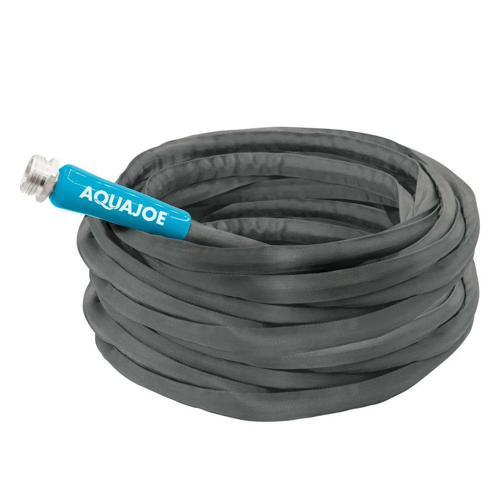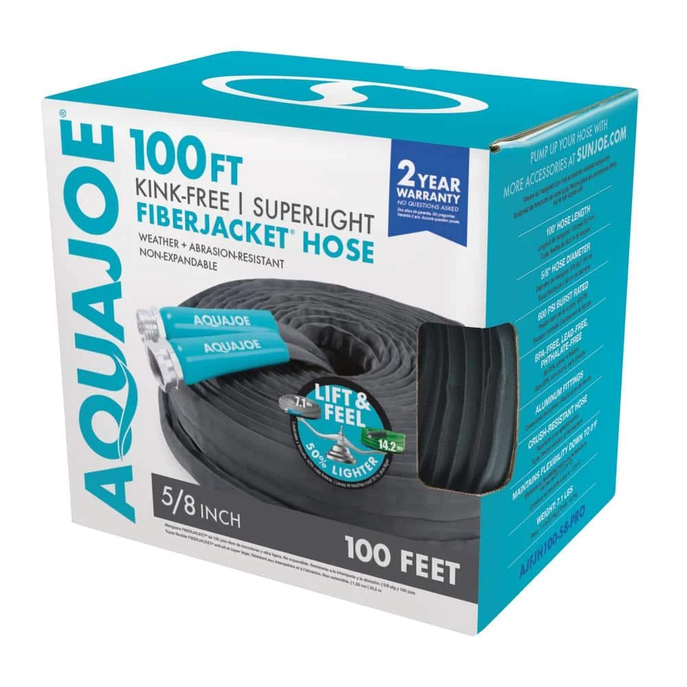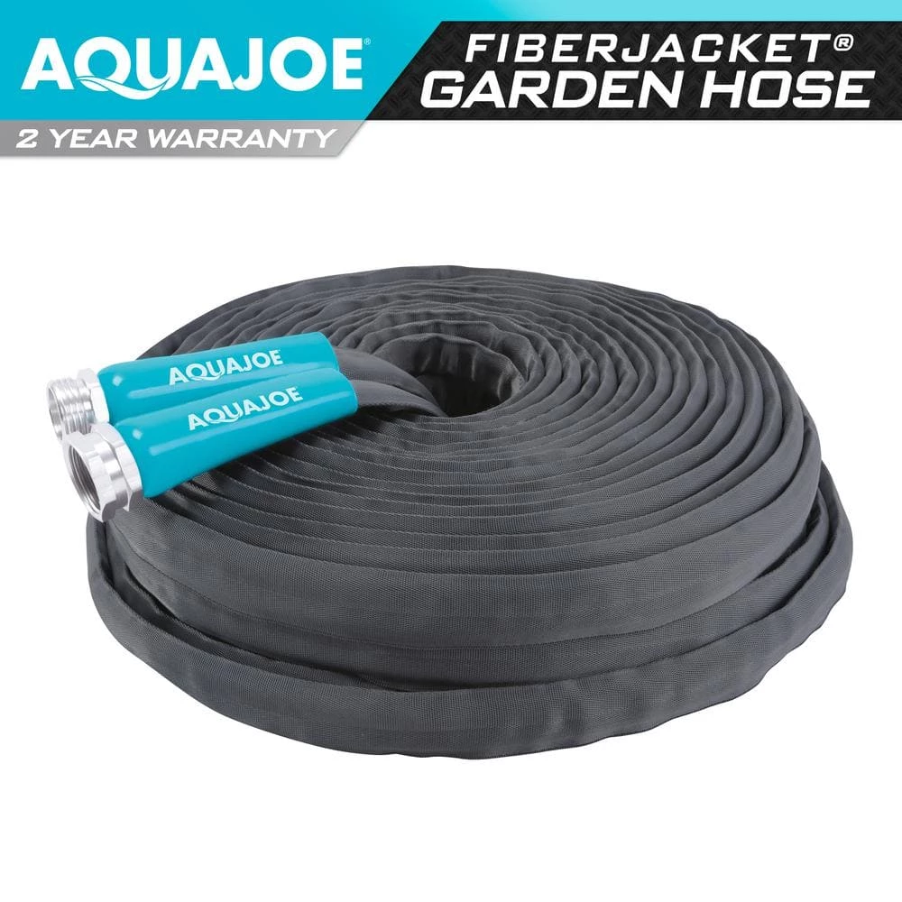 Constructed from a rugged, marine grade fiber jacket surrounding a 5/8 in. flexible inner core, the rip and abrasion-resistant fabric is safe on delicate and painted surfaces no scratching, scuffing or snagging. The innovative, dual-layer design is crush-proof and built to withstand the toughest treatment all while maintaining flexibility down to 0°F. Plus, AQUA JOE is weather and mildew resistant and dries quickly, so you don’t have to pick up a heavy, wet or slippery hose. Equipped with durable metal fittings for a solid, leak-proof connection, AQUA JOE is kink-, twist- and tangle-free for uninterrupted flow when watering your yard or garden. AQUA JOE PRO also features soft, flexible grips for maximum comfort during use. BPA-free, Lead-free and Phthalate-free, AQUA JOE is up to 50% lighter than conventional hoses, and provides maximum durability plus performance, and coils easily for compact storage. AQUA JOE comes in a variety of convenient lengths to fit any size lawn, auto, boat, garden and more.