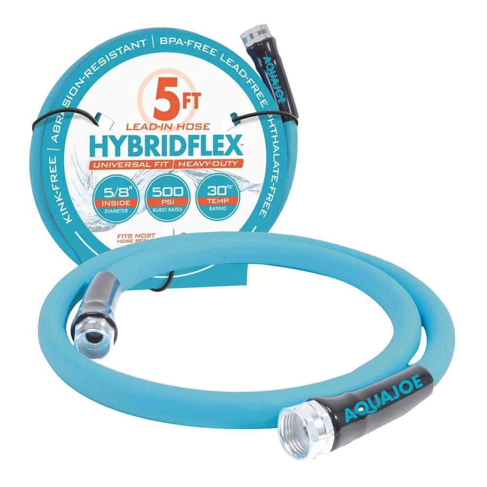 JOE KNOWS HOSE. Ideal for hose stands, watering accessories and other irrigation equipment that’s close to your house, this universal fit HYBRIDFLEX Lead-In Hose from AQUA JOE comes available in a variety of length options. The heavy-duty hybrid polymer FLEX construction prevents kinks, twists and tangles at the tap – and contains no BPAs, lead or phthalates. Extra-durable and built to last, AQUA JOE has a 500 psi burst rating – so it won’t break, crack or burst under pressure. And it remains flexible down to 30°F. The HYBRIDFLEX Lead-In Hose from AQUA JOE. Get Equipped.
