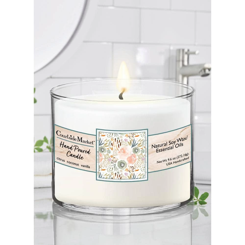 Courtside Market Floral Peach Circular Candle Glass 9.6 oz.