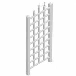 Train your vines to climb the DuraTrel Camelot 28 in. x 64 in. White Vinyl Wall Trellis and enjoy the dynamic design of the stately trellis. Features a sturdy square grid, perfect for supporting even heavy climbing plants, with three vertical bars drawing the eye upward toward majestic pointed finials. The trellis is made of durable vinyl with titanium oxide that protects the material from damaging UV rays so your trellis will never fade, crack, peel, or need to be painted. Trellis pieces arrive pre-fabricated for quick and easy assembly. The ground anchors and all necessary hardware are included. All DuraTrel products come with a 20-year limited manufacturer warranty. Made in the USA.