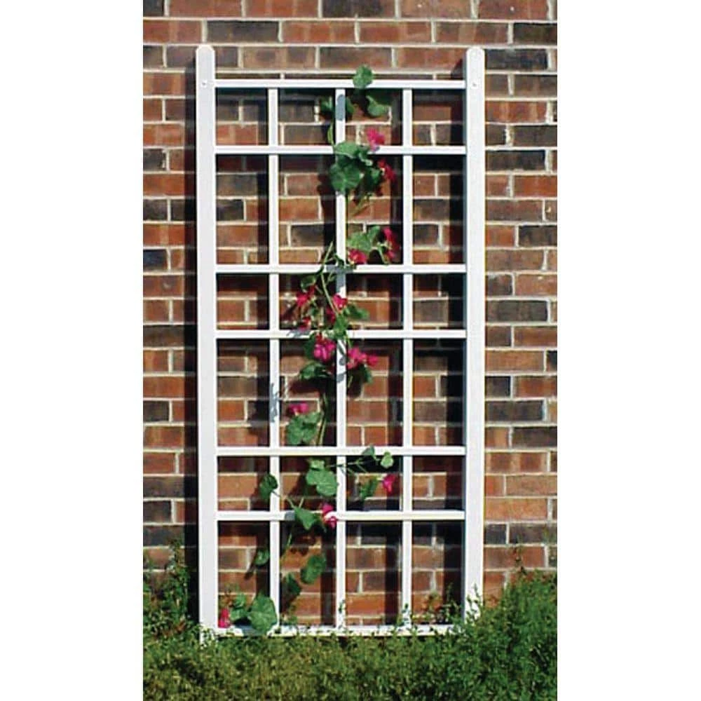 Clean lines and a simple design make the DuraTrel Cottage 28″ in. x 66 in. White Vinyl Wall Trellis perfect for any yard. Roses and other vines will love to climb the grid-style surface. Constructed of durable PVC vinyl, this trellis is completely maintenance-free. It will never fade or warp, and you will never have to sand, paint or stain it. UV stabilizers protect the vinyl from the sun’s harmful rays, keeping it looking like new season after season. All DuraTrel products come with a 20-year limited manufacturer warranty.