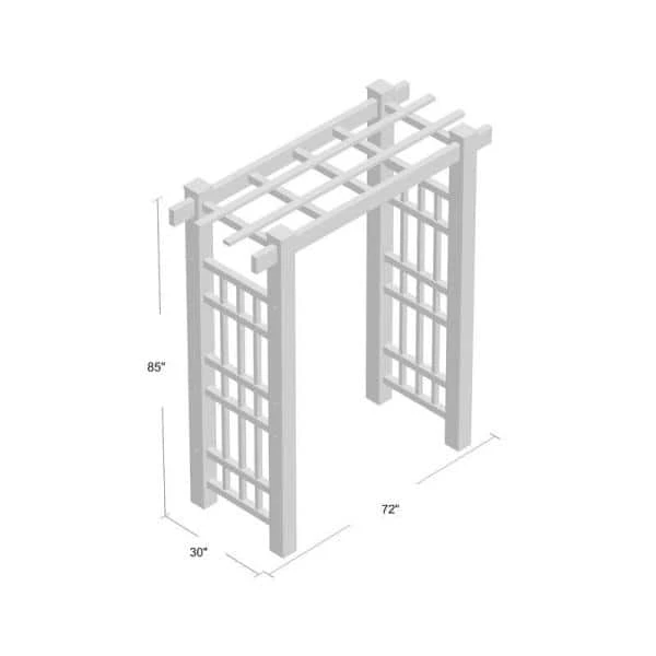 The DuraTrel Windsor 72 in. x 85 in. Vinyl Arbor will transform your backyard into a tranquil sanctuary. Train wisteria or clematis to twist along the sides and drape over the top for a fragrant doorway into your garden. The white color and straight lines will contrast nicely with the colorful, tangled vines and blossoms. The arbor is made from PVC with a UV stabilizer so it won’t rot, crack, or fade even after years of exposure to the elements. It arrives totally fabricated, and includes all hardware and ground anchors.