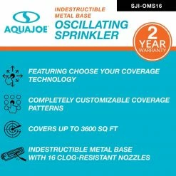 AQUA JOE 20-Nozzle Max Coverage Adjustable Gear Driven Oscillating Sprinkler on Sled Base