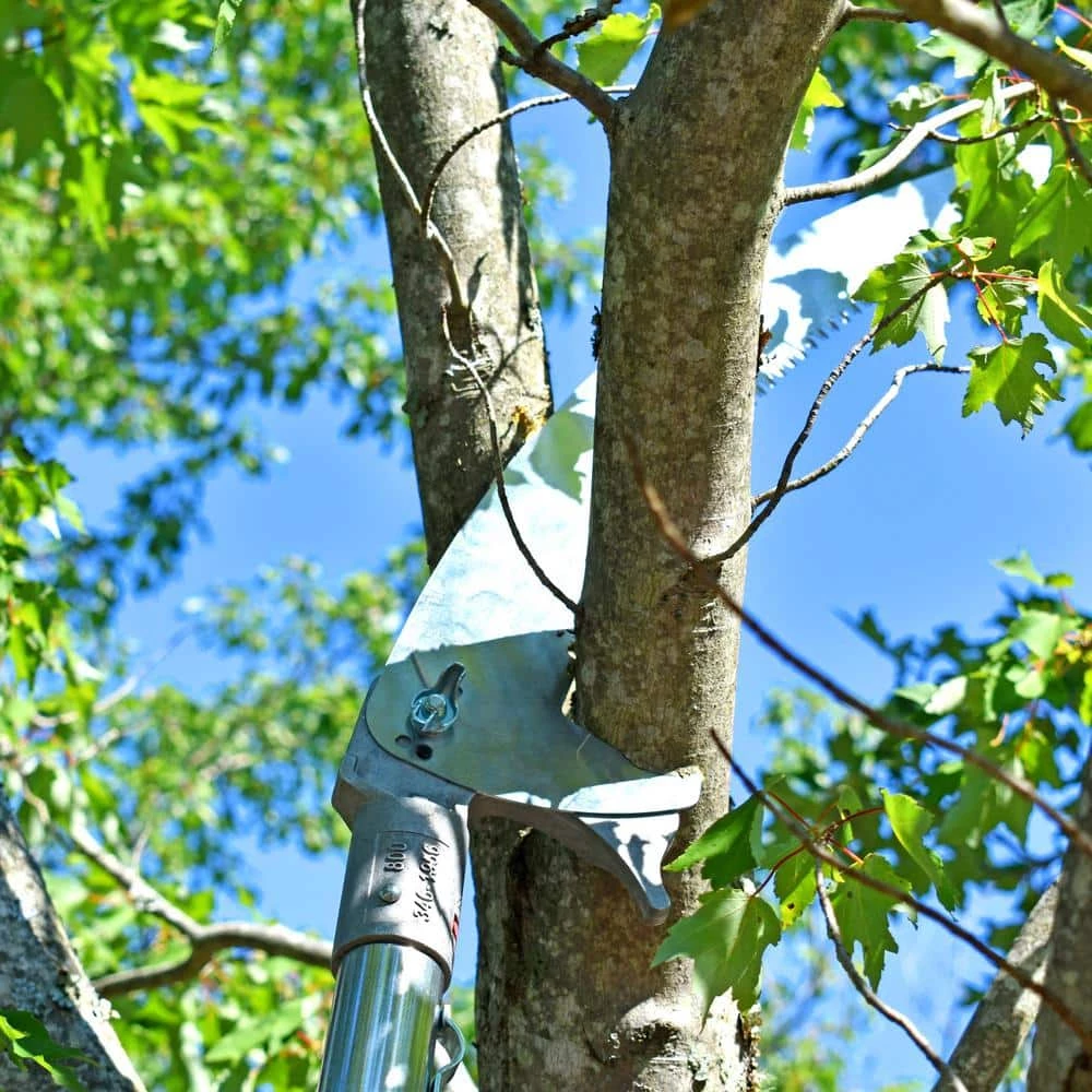 - Sharpened lower hook scores bark to prevent ripping damage to branch collar