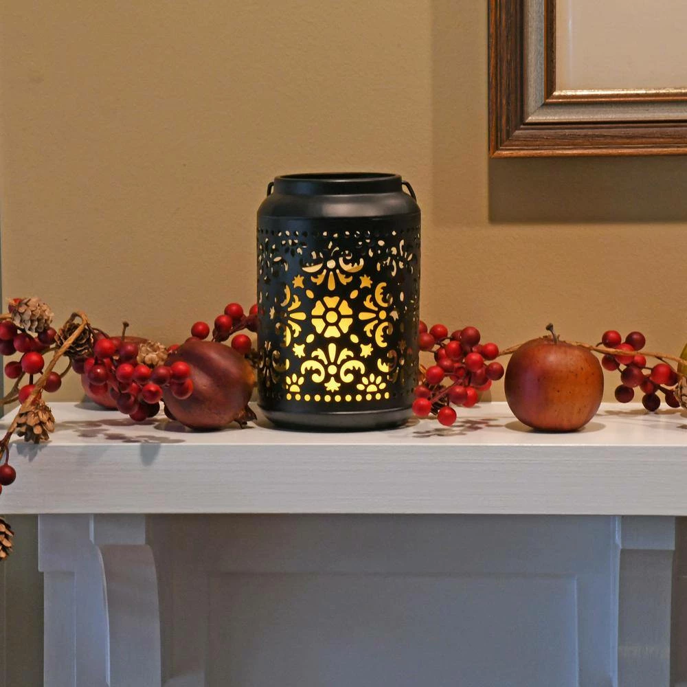 This battery operated lantern with an LED candle features the dynamic movement of real flames. The LED candle highlights the detailed intricate design on this lantern. The visual effect of the candle is vivid, just like a real burning fire, without the risk.