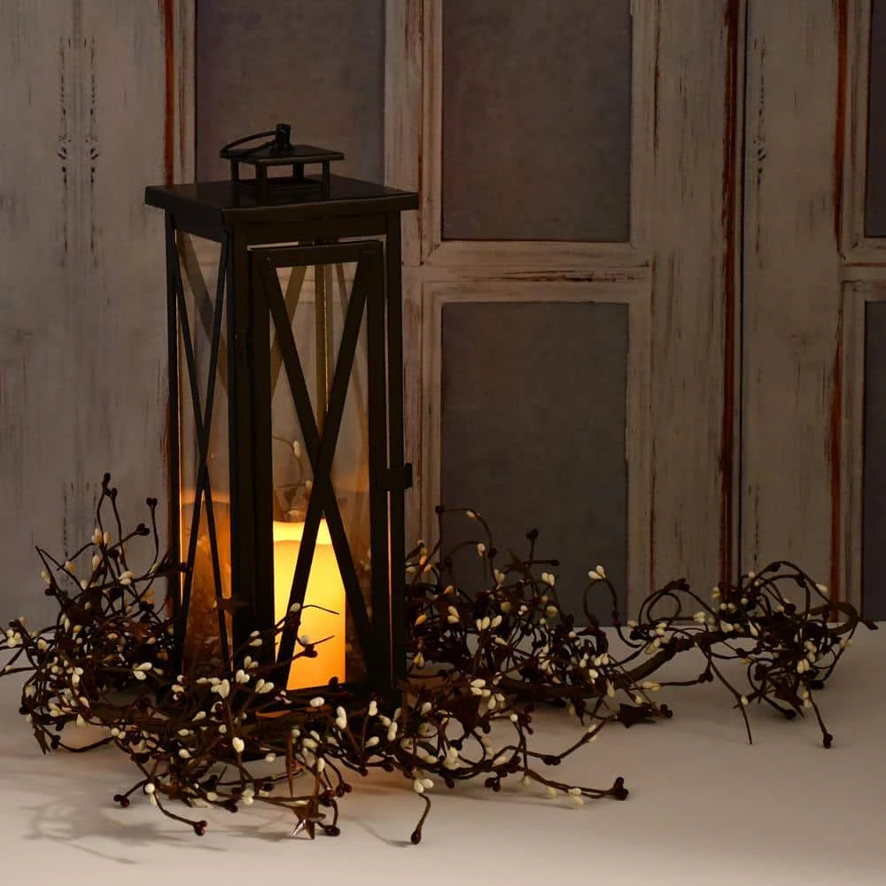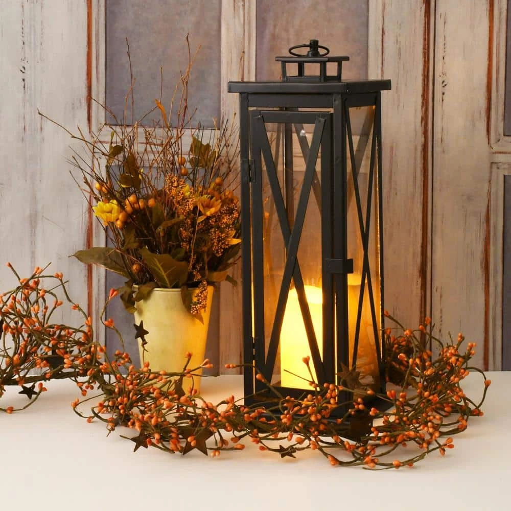 Create a stunning atmosphere to your home decor with this beautiful metal lantern and battery operated candle. The removable 4″ LED candle provides a soft amber glow that illuminates through the crystal clear glass panels. Flameless lanterns are perfect for adding accent lighting to your special event, dinner party or everyday home decor. The candle has a convenient timer incorporated 5 hours on 19 hours off.