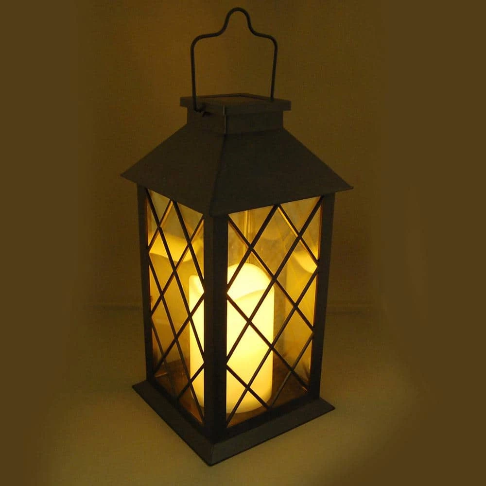 Charged by the sun, this classic solar powered lantern will highlight the look of your outdoor decor from dusk until dawn. The flickering amber LED light adds a warm glow of illumination. This lantern can be placed anywhere outdoors without extension cords. The sturdy plastic and glass construction makes this lantern perfect for the outdoor elements. Keep lantern in a sunny area everyday to charge the panel for nighttime illumination. With a handle, this lantern can hang from a shepherd’s hook and displayed along a walkway.