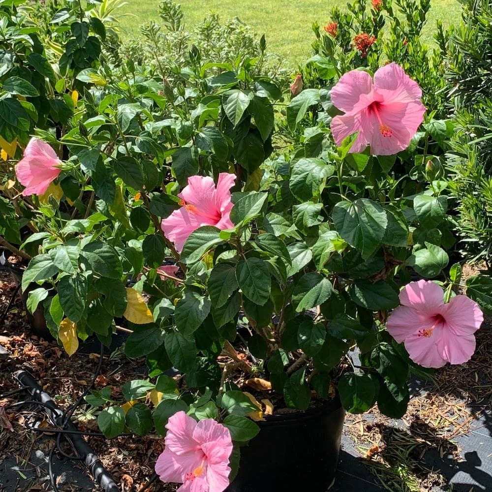 1 of the most popular and well known tropical Hibiscus varieties, the ‘Seminole Pink will charm with its non stop blooms throughout the warm season. Pink flowers are single, very big, saucer sized and showy and sit atop a vigorously growing, quite dense, upright bush. This evergreen plant grows to be about 6 ft. T to 8 ft. T x 4 ft. W to 5 ft. W. Ideal for an entryway, as an anchor for a garden bed, in a large container, as an accent for a mixed border, basically anywhere a splash of color is desired.