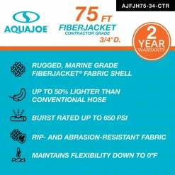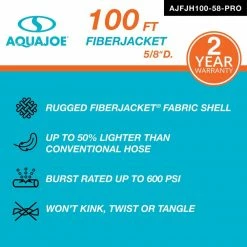 AQUA JOE 5/8 in. Dia x 100 ft. Ultra Flexible Kink Free Fiberjacket Garden Hose, Metal Fittings