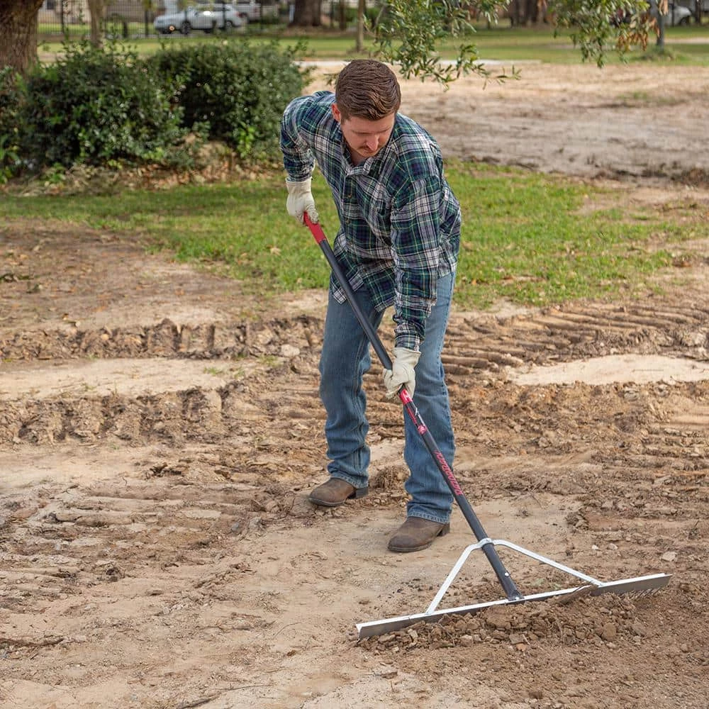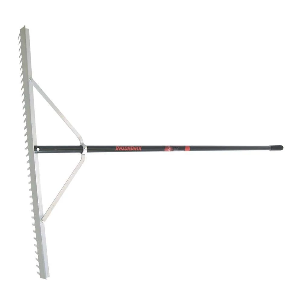 The Razor-Back aluminum landscape rake is designed with a wide head to level quickly and smoothly. The 36 in. aluminum head is lightweight despite its size so it takes less time and exertion to tackle tough tasks. This landscape rake is a heavy-duty rake that is great for contractor and professional use, as well as serious homeowners.