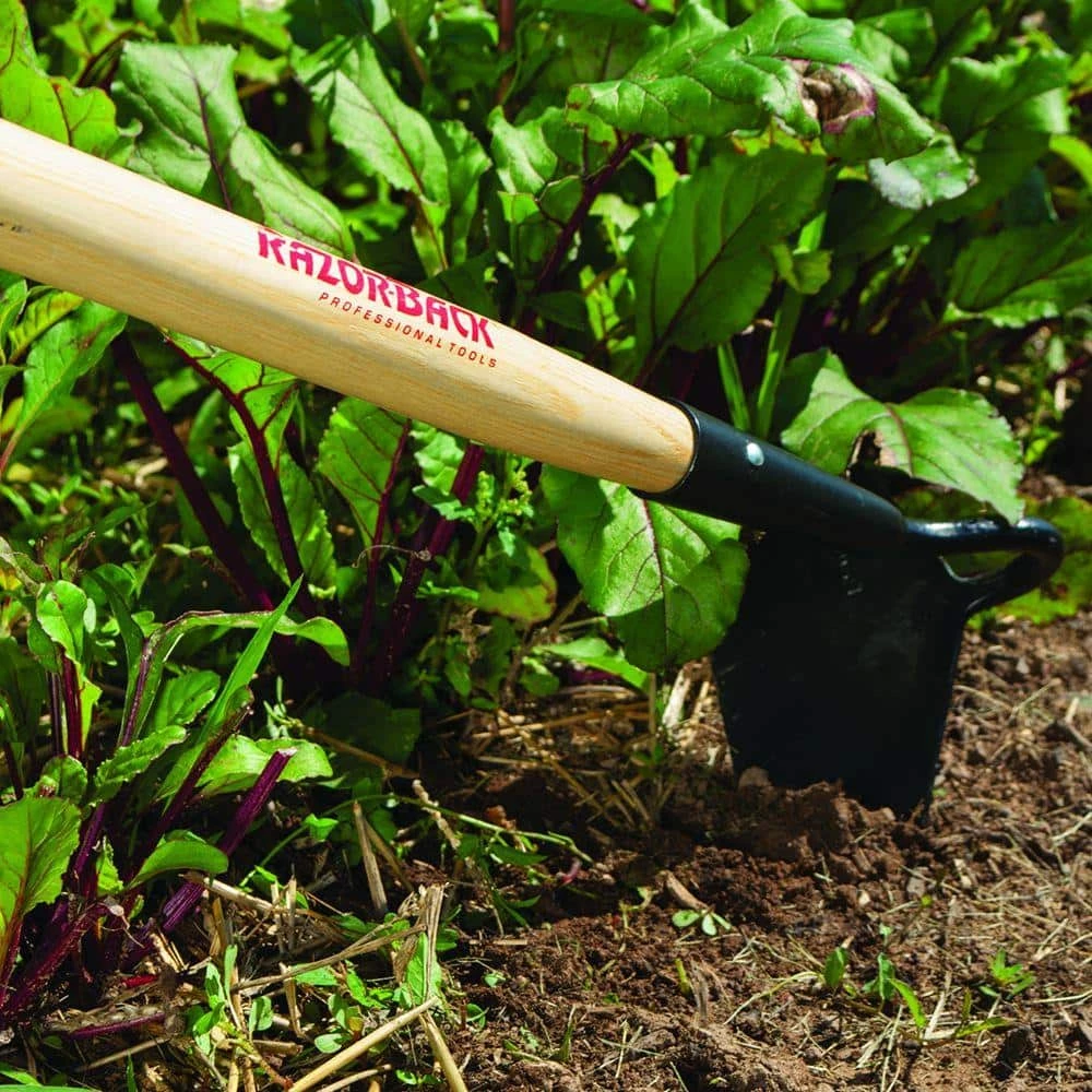 Strength and durability make Razor-Back tools the choice of professionals. This Nursery/Beet Hoe is ideal for chopping, weeding and making furrows for planting. Sheared ears enable the hoe to be used close to beet leaves. Despite its name, this tool is versatile enough to use for general landscaping and garden maintenance.