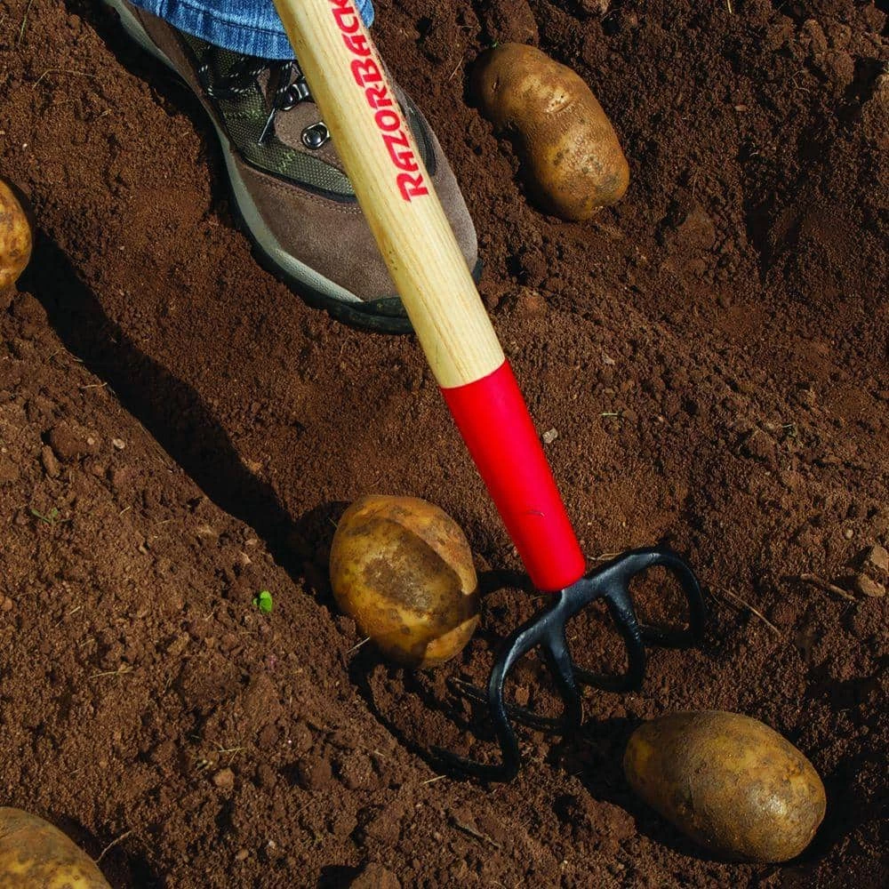 Strength and durability make Razor-Back tools the choice of professionals. This Potato Hook is more versatile than its name implies. It’s tines are sturdy and ideal for digging or harvesting potatoes and similar types of vegetables. It can also be used to transfer manure and loose material or even for general garden clean-up.
