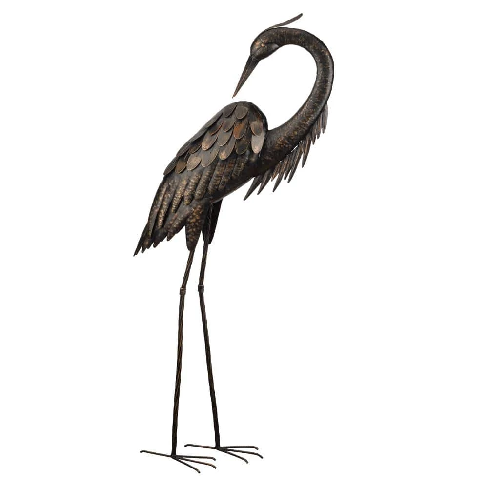 This life-size and lifelike Heron statue stands gracefully. The antique bronze finish and handcrafted metal give a distinguished look and added value. Pairs nicely with the 45″‘ version (SKU 10867). This classic design has a weather-resistant powder coating. Its durable construction allows for years of enjoyment.