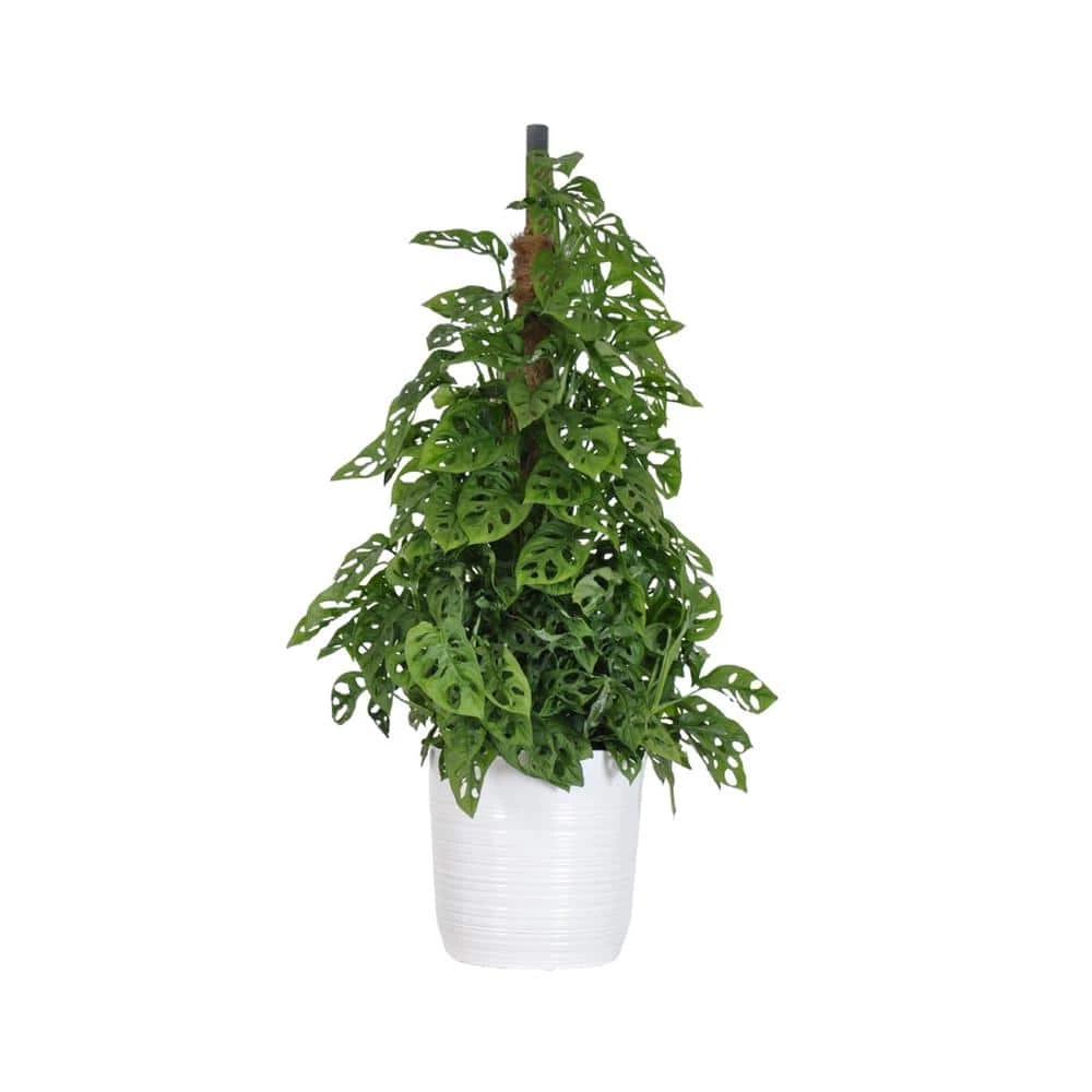 The Monstera Adansonii or as more commonly known, swiss cheese plant, is an easy to grow indoor vining houseplant with air purification qualities. The Swiss cheese plant is a tropical ornamental that has aerial roots growing downwards from the stem. These roots easily reach the ground, giving this plant a vine-like tendency. These climbers have striking, perforated deeply green leaves that will make you the envy of any plant collector. The Andansonii enjoys plenty of indirect sunlight and can also thrive comfortably in a low light environment and like many indoor plants, water when the top soil is dry to the touch. Indoor house plants are proven to be excellent air purifiers which help decrease stress and anxiety while stimulating creativity and productivity. Great for yourself or as a gift.