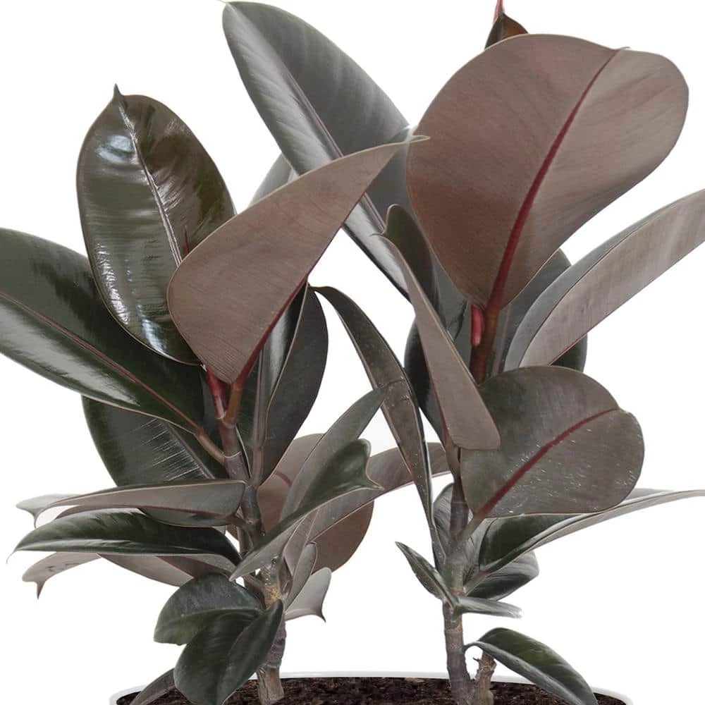 The rubber plant is shipped in a premium 10 in. Dia durable plastic pot and to prevent water spillage the pot does not contain holes. The Ficus Burgundy plant also known as the Elastica Rubber Fig develop leaves between 8 in. L to 12 in. L and from 4 in. W to 5 in. W. The Ficus Burgundy or Elastica Plant creates a strikingly ornamental plant look in any home or office. The Rubber plant as is most commonly known, contains a milky white latex that can be used to make rubber. The Ficus Burgundy is a plant that needs little water to survive. To enhance the beauty of the Ficus Burgundy make sure to use a nice container with drainage to keep excess water off the plant and to maintain a healthy plant. Indoor house plants are proven to be excellent air purifiers which help decrease stress and anxiety while stimulating creativity and productivity. Great for yourself or as a gift.