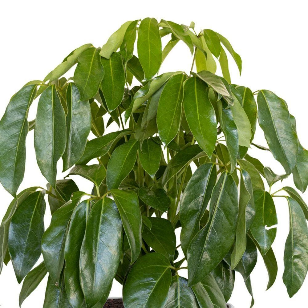 The Schefflera Amate has beautiful large glossy green leaves which grow in clusters and create a large umbrella like canopy. The glossy rich green colored canopy illuminates any room With a fresh tropical look. This fast growing easy care plant enjoys medium light and water and will grow uniform to create a lush full plant to beautify any large space. Great for yourself or as a gift.