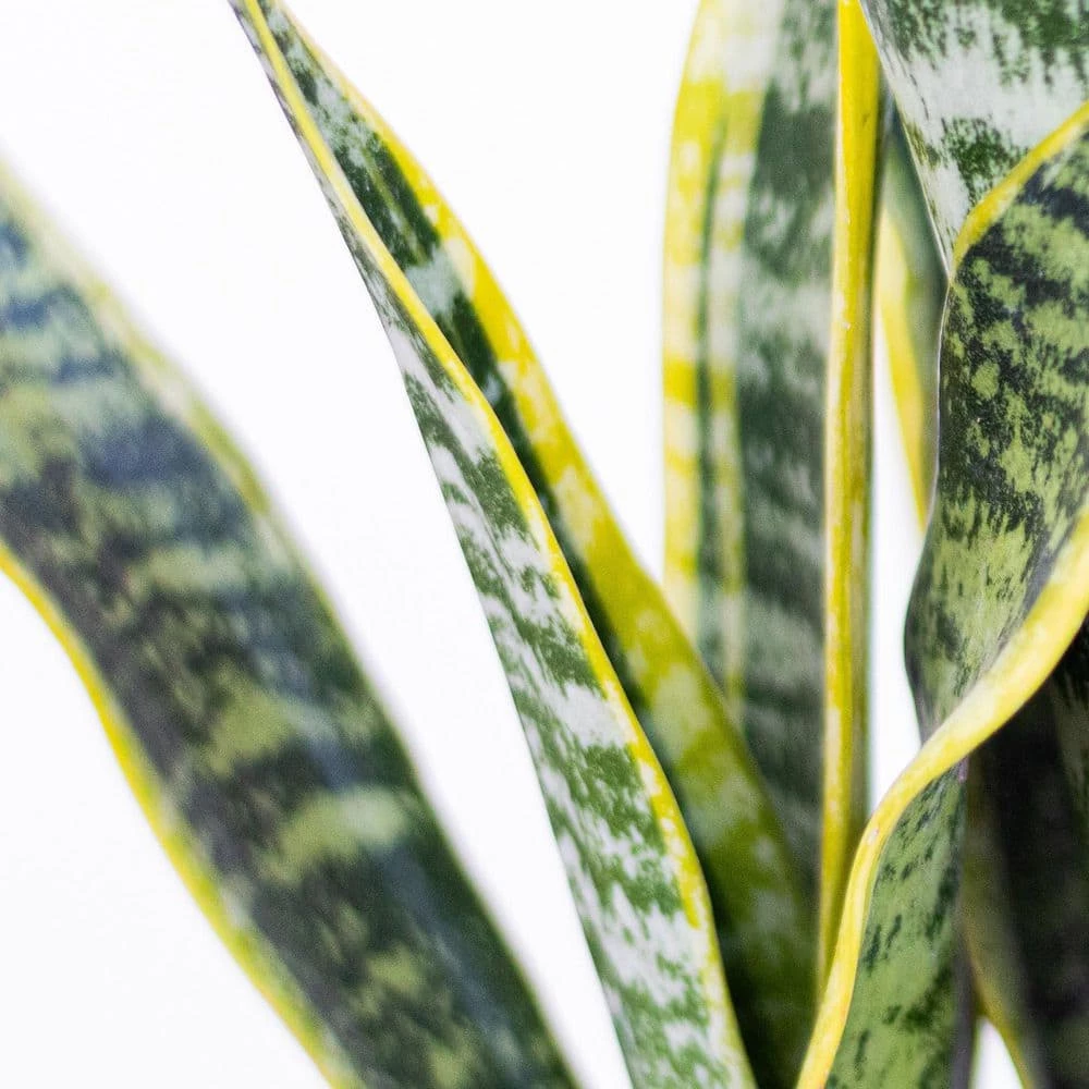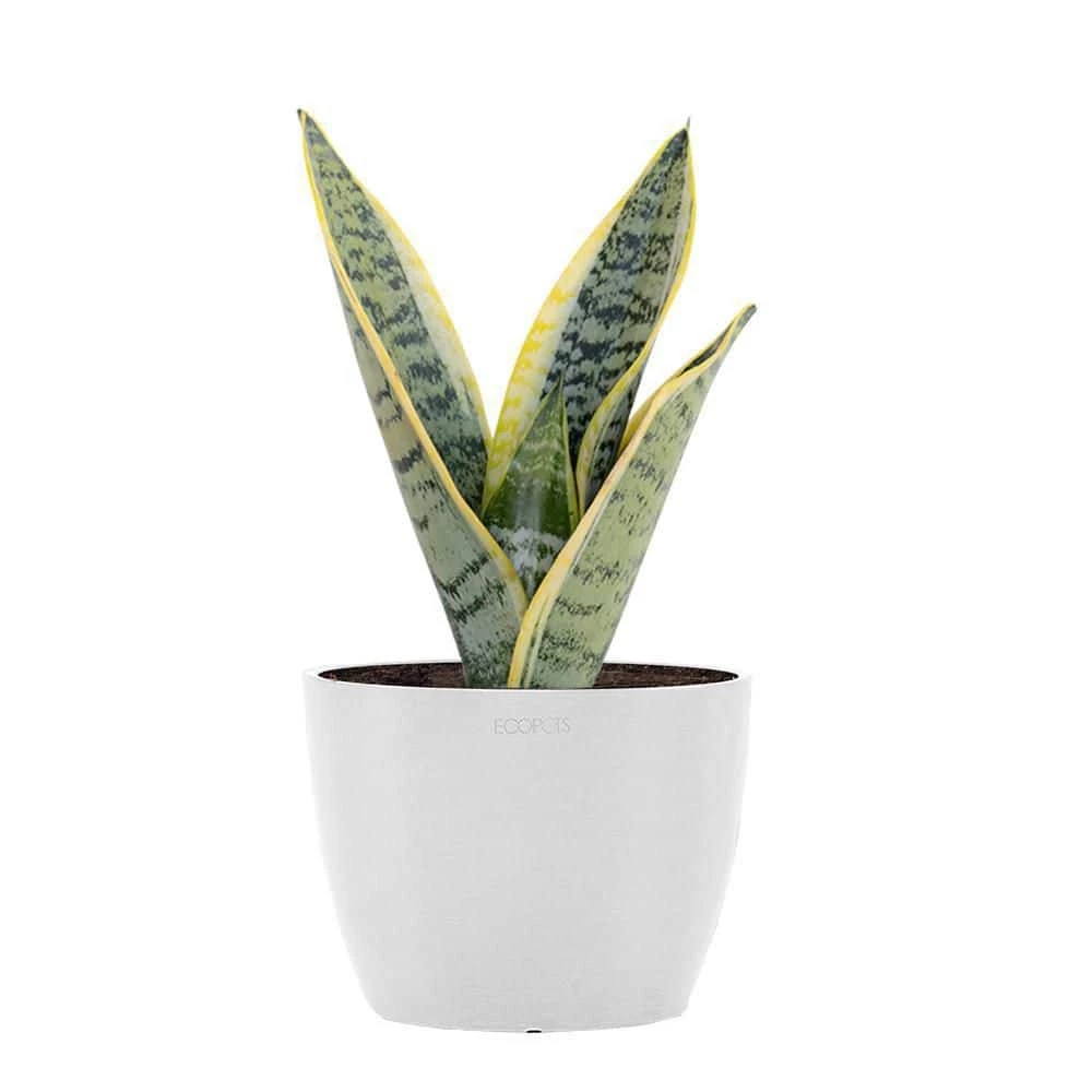Grown by United Nursery, the Sansevieria Laurentii or Snake Plant as it is commonly called, is an easy care stemless evergreen that will add years of beauty and elegance to any decor. Its sword-shaped leaves are deep green with light gray-green horizontal stripes and Its upright character makes it a popular choice in any home or office setting. The plant is perfectly paired with a beautifully designed decorative pot made from 100% recycled plastics and natural minerals and hand finished for a distinctive natural look. To keep you plant looking its best, the Sansevieria does best in medium to bright light and water to keep soil moist, but prevent from drying out.