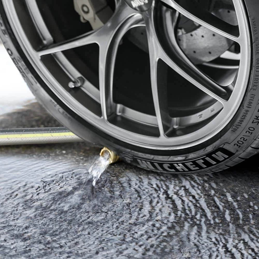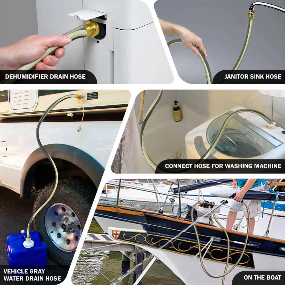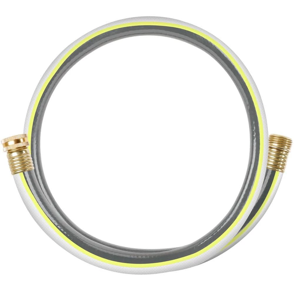 The 3/4 in. x 4 ft. medium-duty gray garden hose is 0.8 lbs. It is made from lead free vinyl. It has a 12-year warranty. It is a strong and useful add on to your gardening needs.