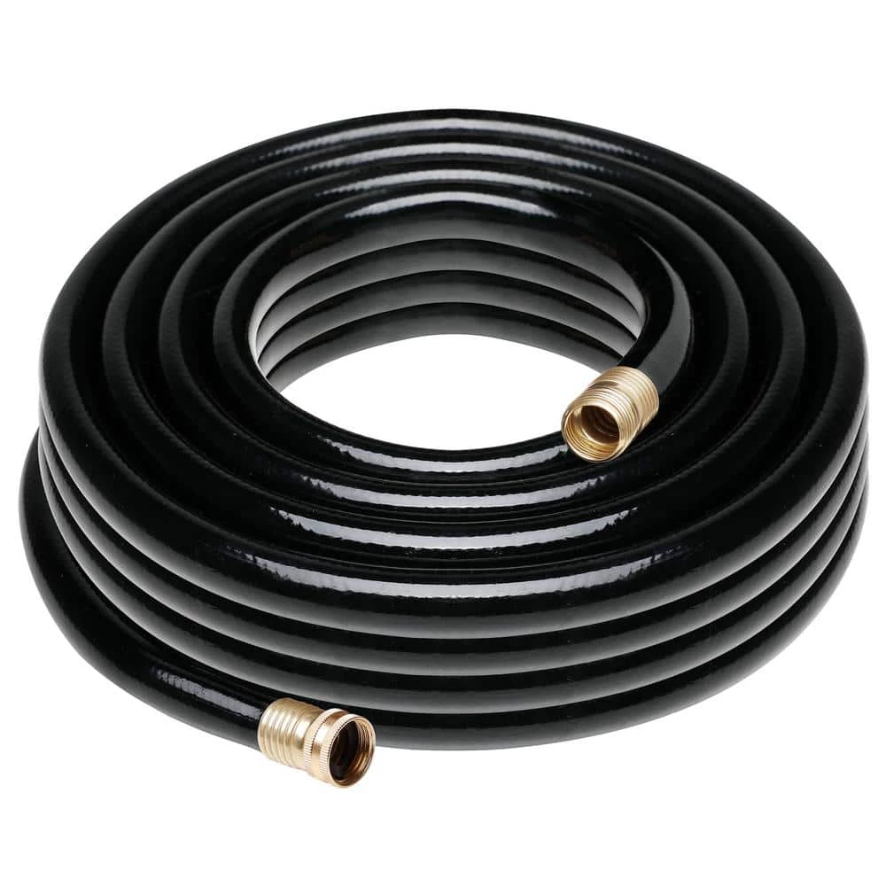 The 3/4 in. x 50 ft. medium-duty black garden hose is 10 lbs. It is made from lead free vinyl. It has a 12-year warranty. It is a strong and useful add on to your gardening needs.