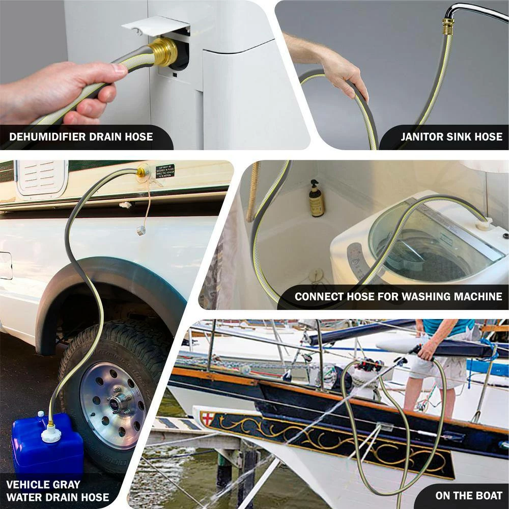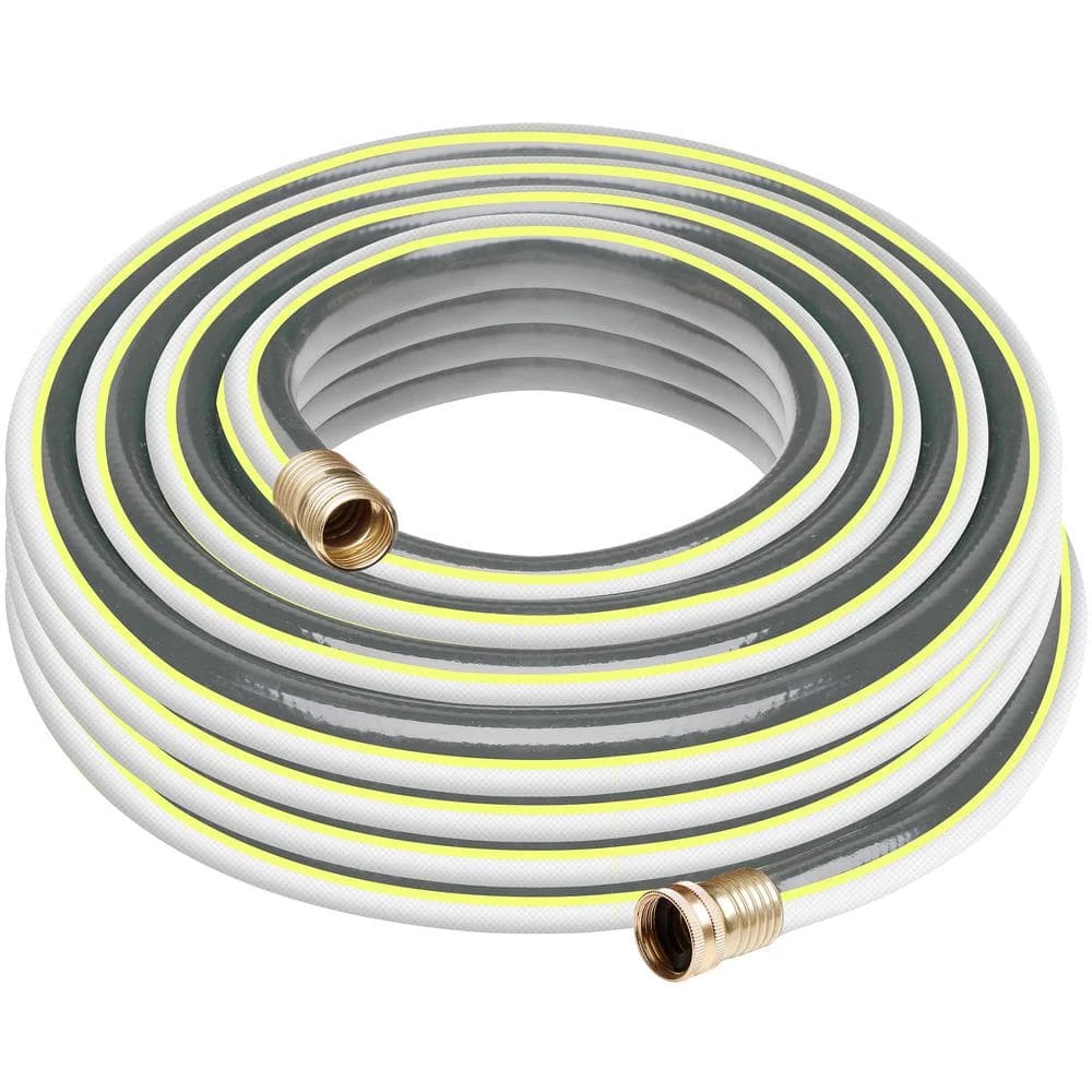 The 5/8 in. x 50 ft. medium-duty gray garden hose is 7.3 lbs. It is made from lead free vinyl. It has a 12-year warranty. It is a strong and useful add on to your gardening needs.