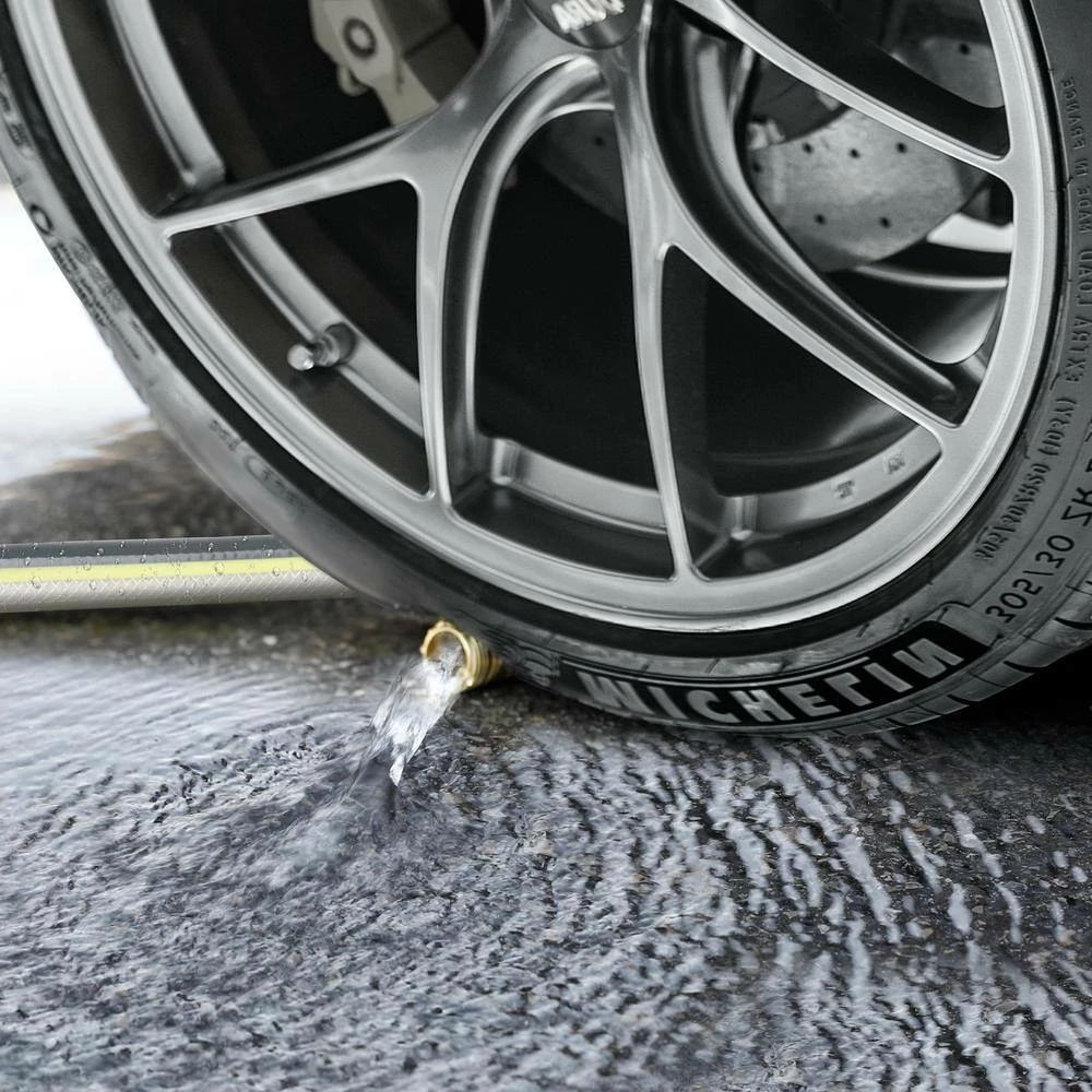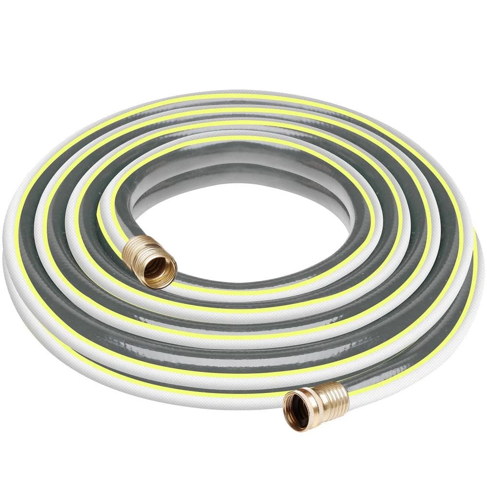 The 5/8 in. x 25 ft. medium-duty gray garden hose is 3.6 lbs. It is made from lead free vinyl. It has a 12-year warranty. It is a strong and useful add on to your gardening needs.