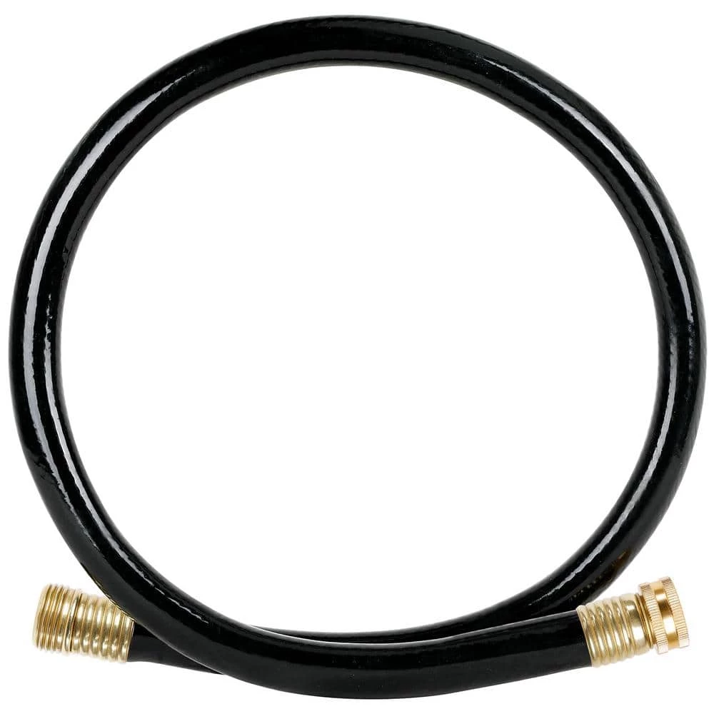 The 5/8 in. x 3 ft. medium-duty black garden hose is 1 lbs. It is made from lead free vinyl. It has a 12-year warranty. It is a strong and useful add on to your gardening needs.