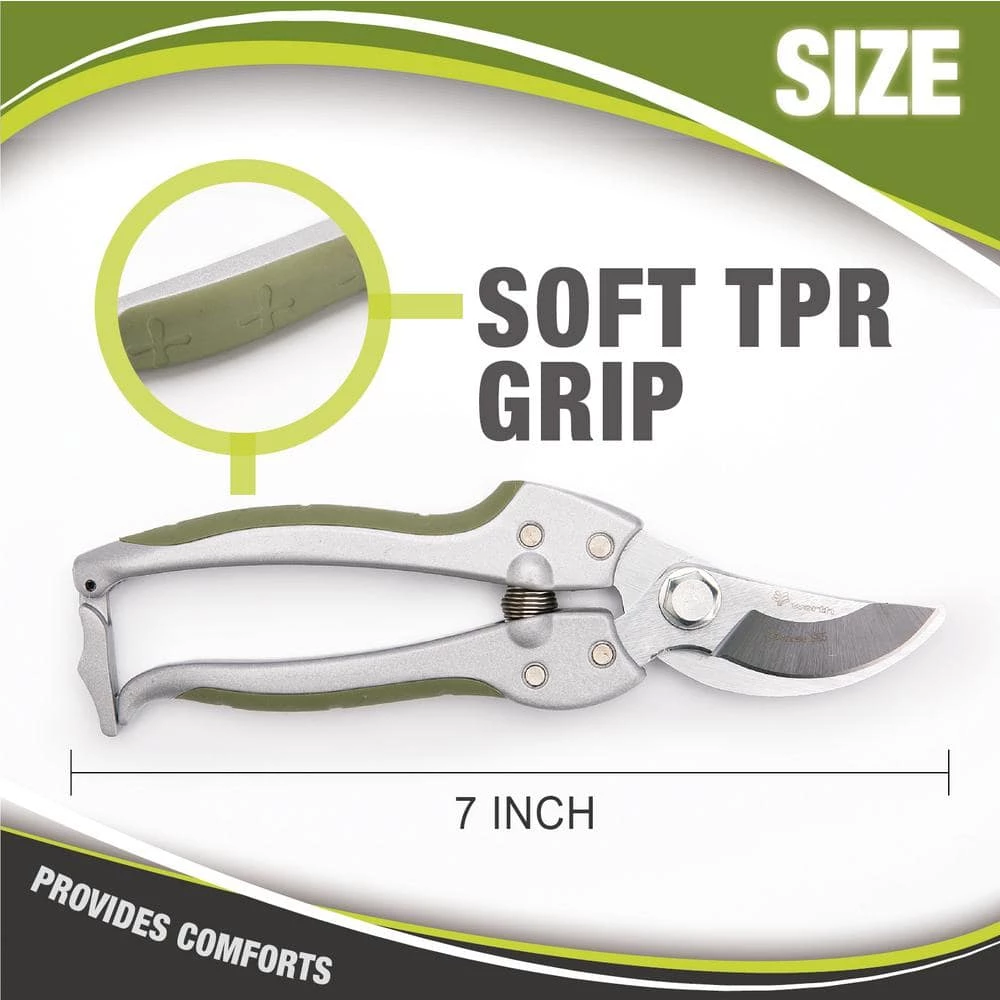 A unique bypass pruner designed for ladies. It comes with a 2 in. SK5 steel blade, cuts small branches easily. The handles are covered with TPR grips make holding comfortable. It is a handsome long lasting cutting tool that you need to have.