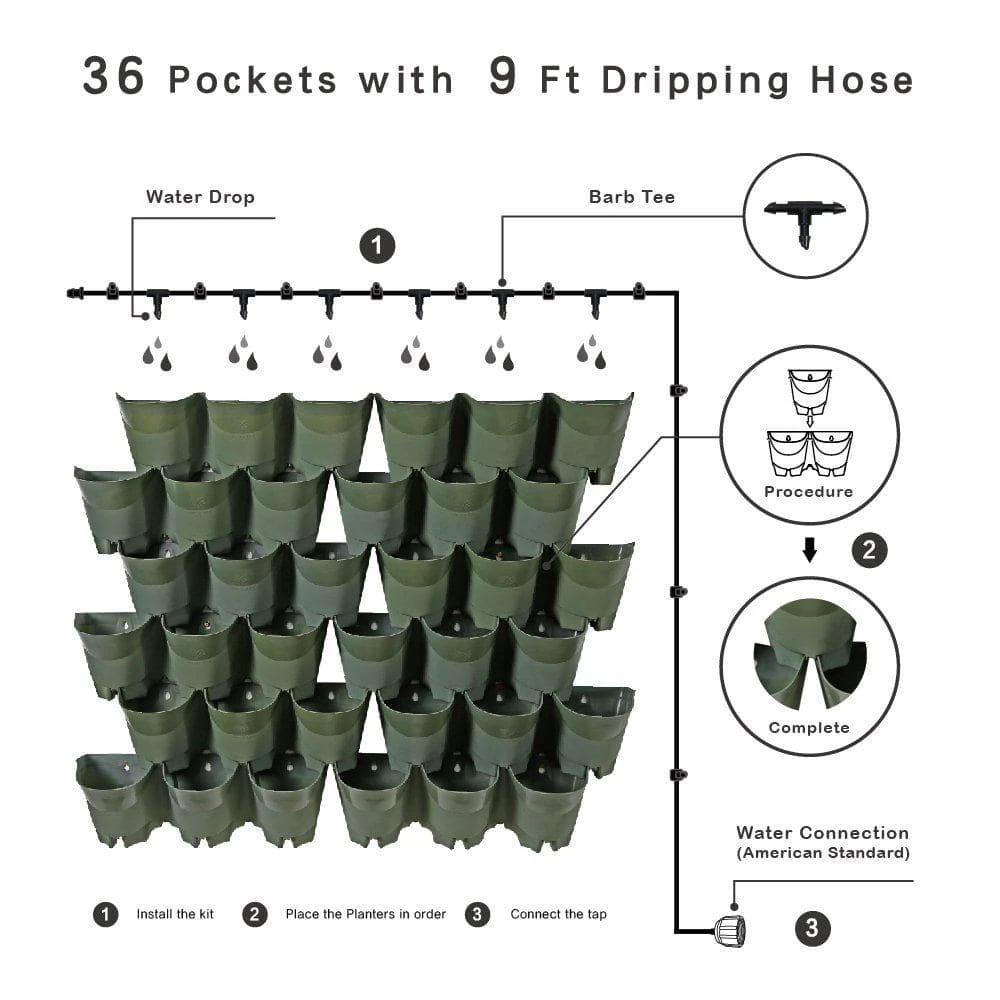 - Combination of 36 inner baskets and 36 outer shell pockets provide a smooth self-watering and air flow platform that induces healthy plant growth
